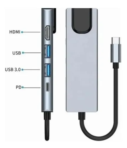Hub USB C 5 em 1 Kp-ad143 Rj45/ 2x USB/HDMI/Knup