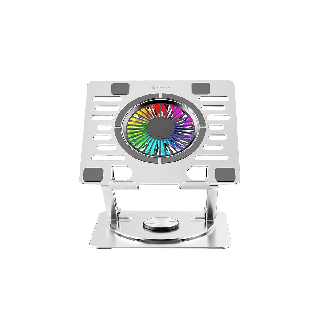 Liberte sua criatividade com a Base Giratória NBC-1000 C3Tech Gaming. Personalize sua experiência com rotação de 360°, ajuste de altura e 10 modos de iluminação RGB. Mantenha seu notebook de até 17,3 polegadas seguro e resfriado com os pads de silicone e os coolers silenciosos. Construída com materiais de alta qualidade e resistente à corrosão, esta base oferece desempenho e durabilidade incomparáveis.