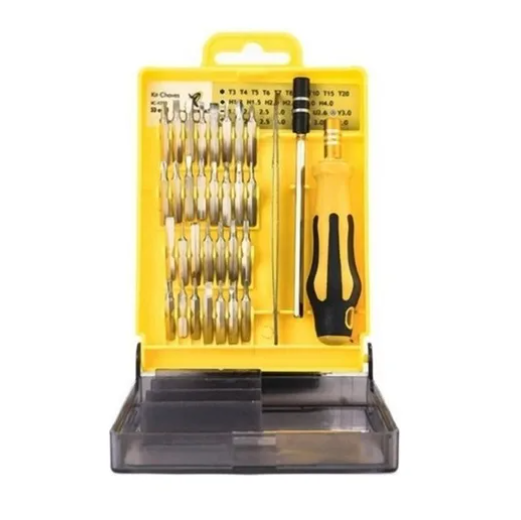 Este Kit Jogo de Chave de Precisão, 33 Peças é indicado para pequenos reparos, serviços e reparos domésticos e automotivos, além de manutenção de celulares e eletrônicos. As opções de pontas favorecem o seu dia-dia.